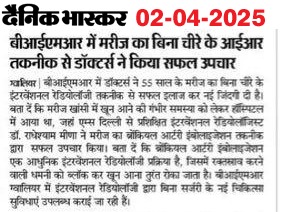 बीआईएमआर अस्पताल के ह्रदय रोग विभाग में श्री महेंद्र शर्मा उम्र 68 साल पुरुष को.......