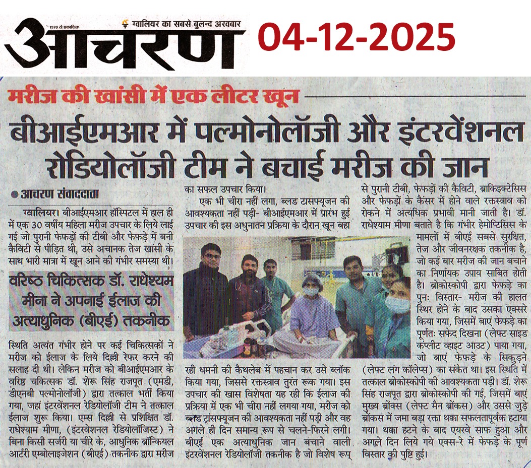 बीआईएमआर हॉस्पिटल ग्वालियर में पल्मोनोलॉजी एवं इंटरवेंशनल रेडियोलोजी की मदद से ...