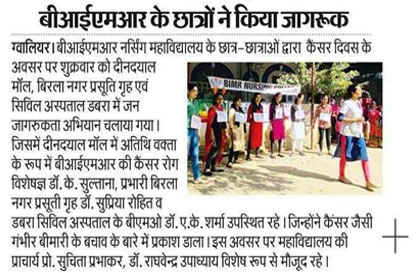 BIMR के छात्रों ने कैंसर से बचने के लिए किया जागरूक