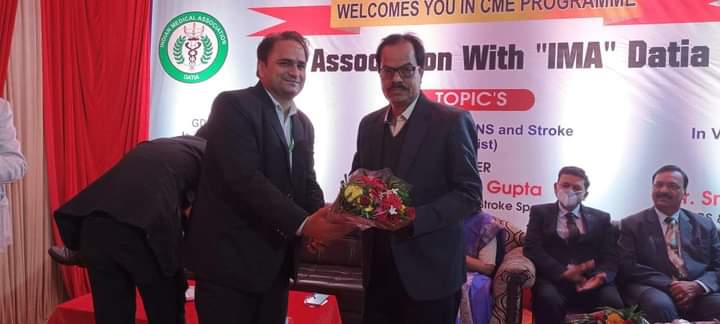 C.M.E. का शुभारंभ Dr. R. B. Kurele (C.H.M.O. Datia),Dr. Rajesh Gaur, Dean, Medical College Datia, Dr. Pradeep Shukla (President IMA Datia) एवं Dr. Sanjay Dhir (Addl. Director, BIMR Hospitals) के कर कमलों से संपन्न हुआ