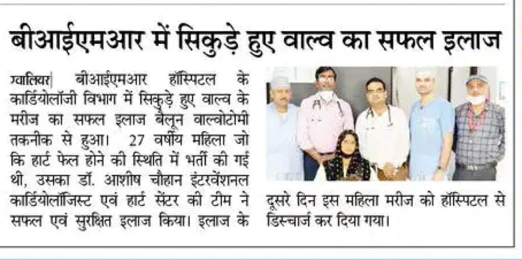 बीआईएमआर हॉस्पिटल में हुआ ह्रदय के सिकुड़े हुए वाल्व का सफल ईलाज